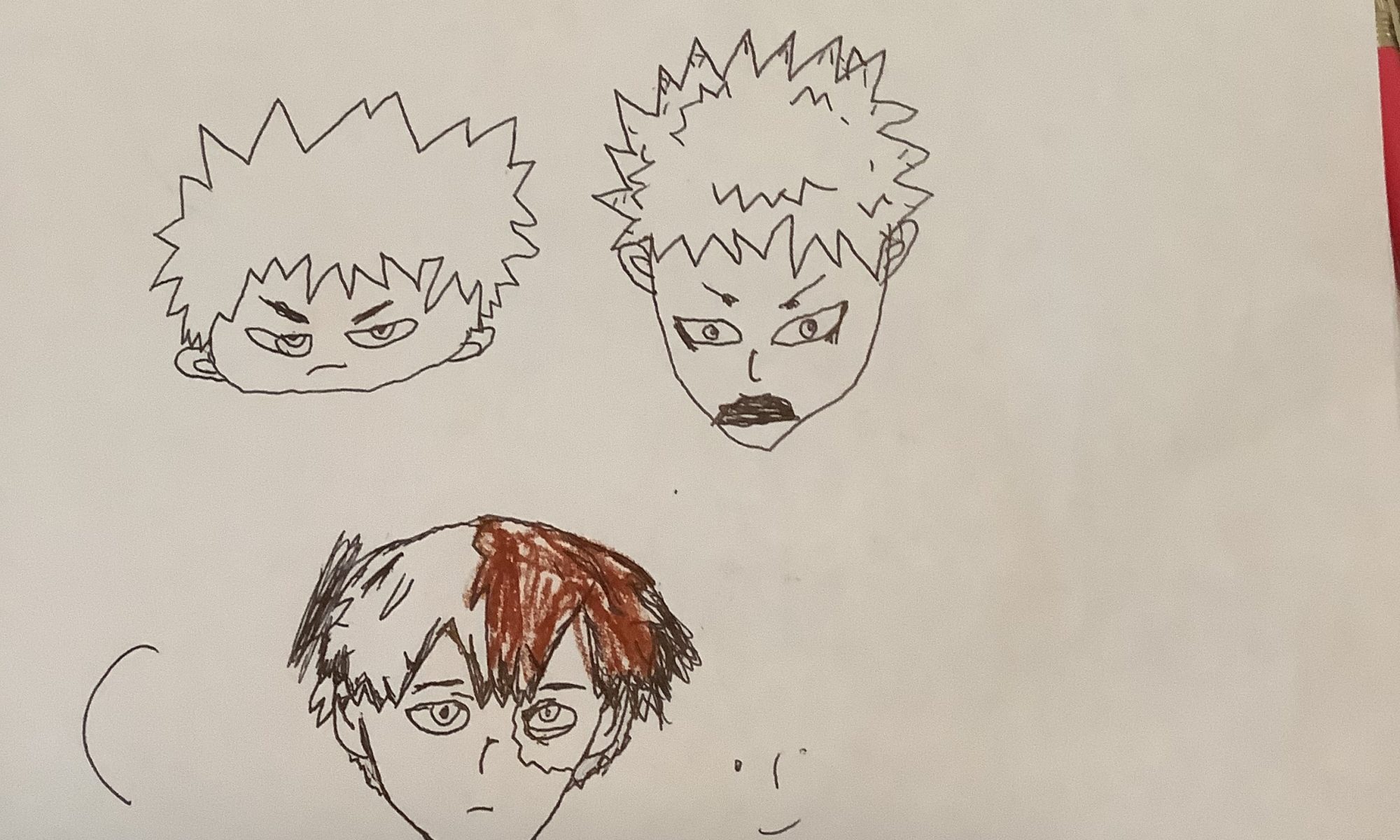 My first attempt in drawing Shoto Todoroki. I messed on a few features, and the left side of his hair color. Overall I did decent I also did Bakugo. It really needs improvement…